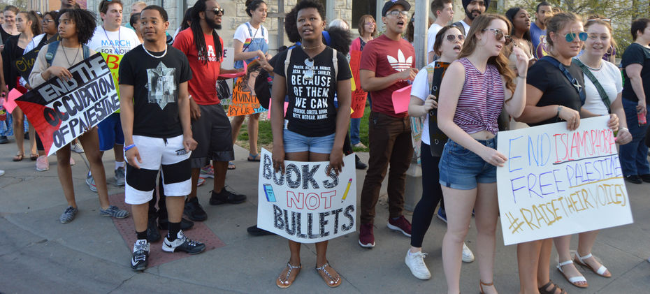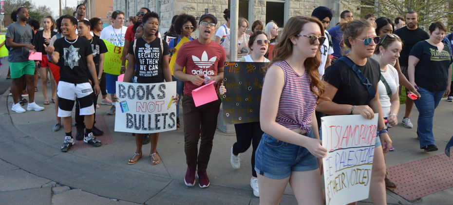 The march took place directly afterwards, covering much of campus as well as a loop through Aggieville. Several students gathered in the Union after marching to rock out with Jade Archetype.