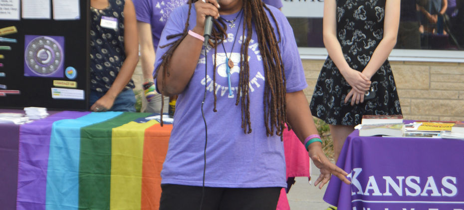 Several K-State students stepped up to the mic during the rally to express their frustration with exploitation, genocide, police murder, rape, settler-colonialism, military occupation and war, environmental racism, white supremacy, transphobia, homophobia, Islamaphobia, xenoophobia, and heteropatriarchy. Many of these students also offered words of encouragement and inspiration to fight back against these forms of violence.